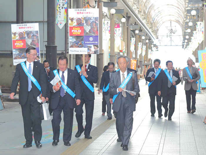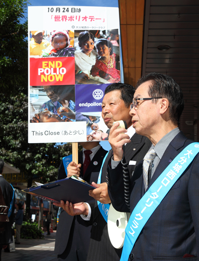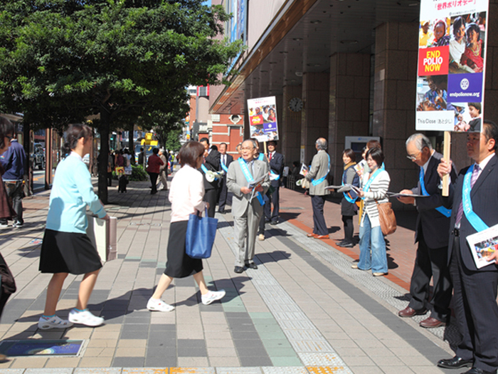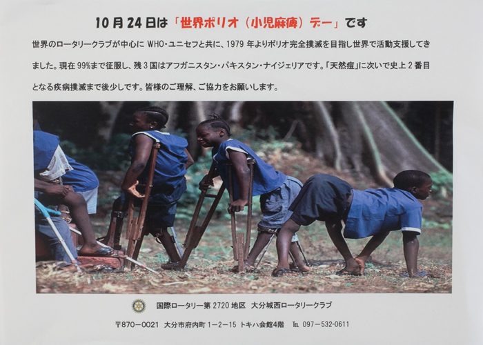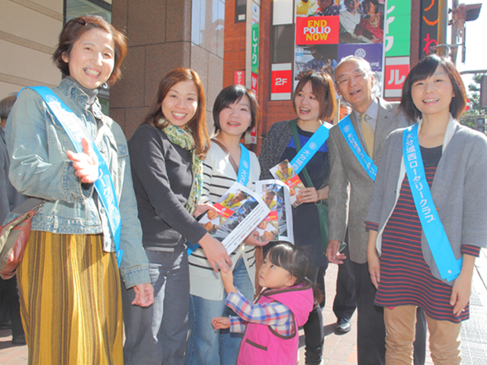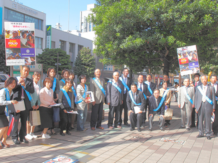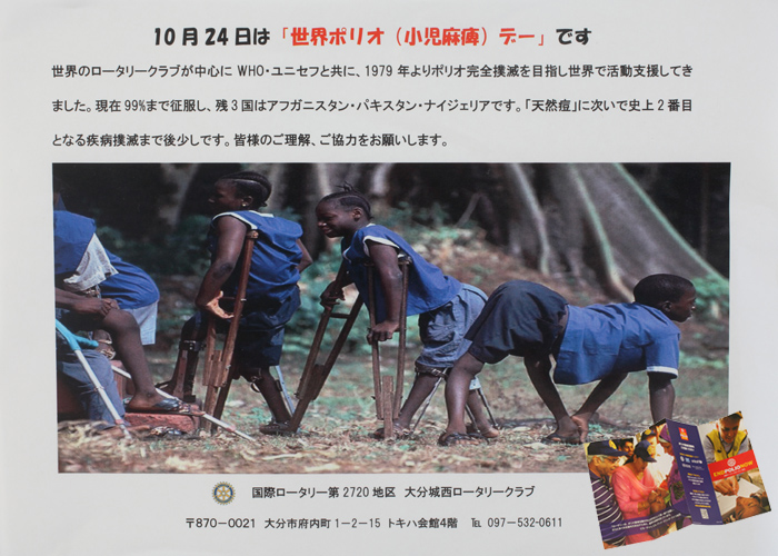 青く澄み渡った秋空のもと10月24日「世界ポリオデー」に呼応して当日、当クラブは会員及び関係者で大分市街にポリオ撲滅キャンペーンに出かけました。