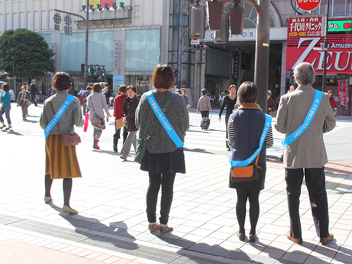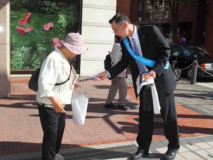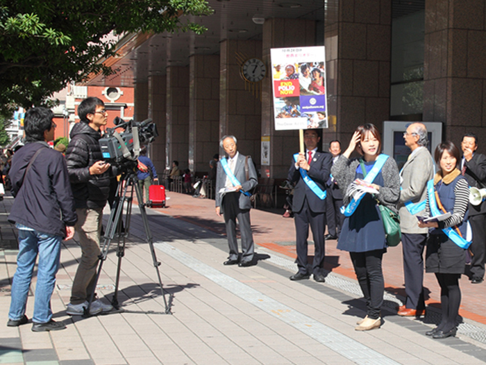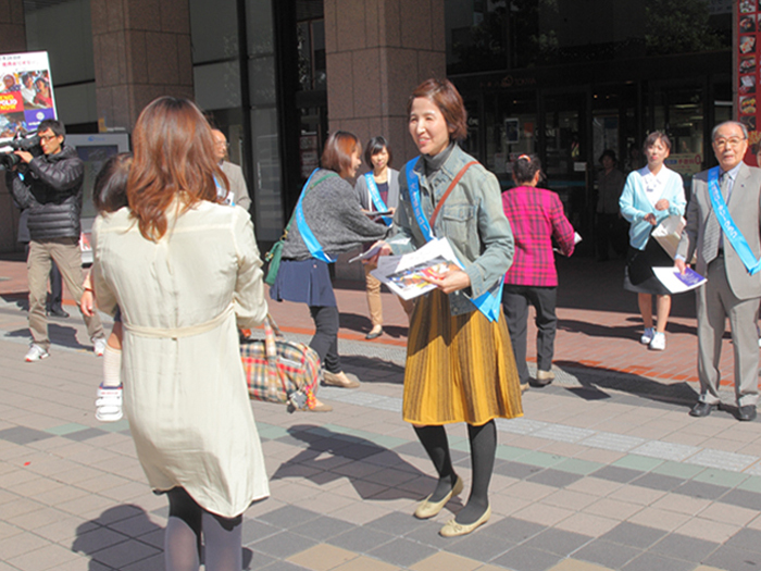特にトキハ前では、テレビ、新聞の取材を受け、街行く人にオリジナルのチラシを配り、アンケートを取る広報活動を実施しました。