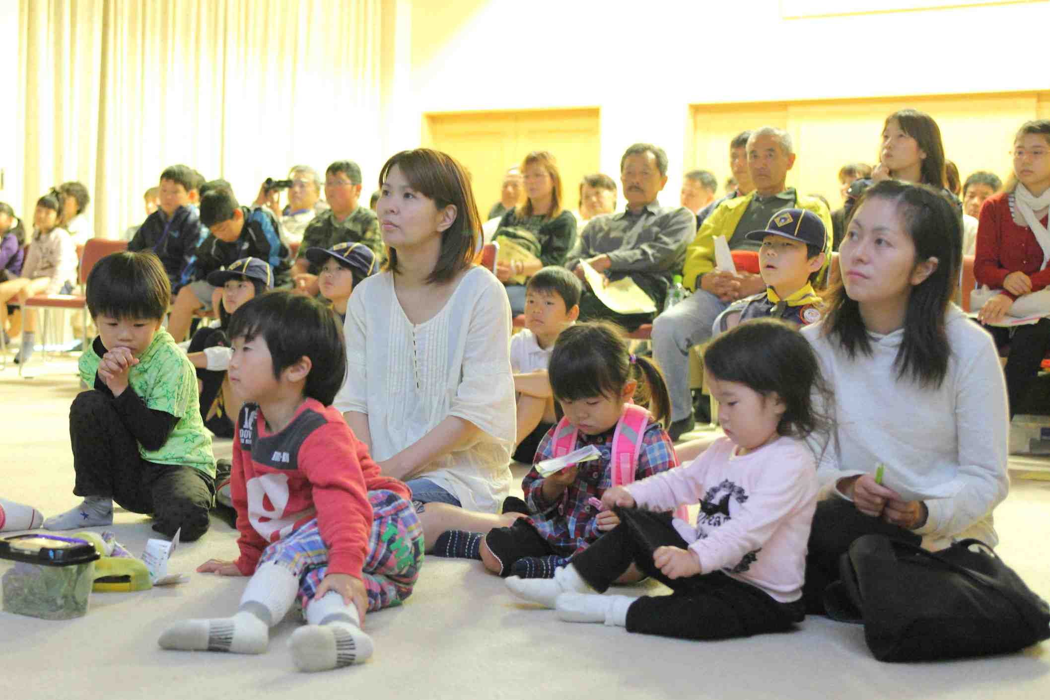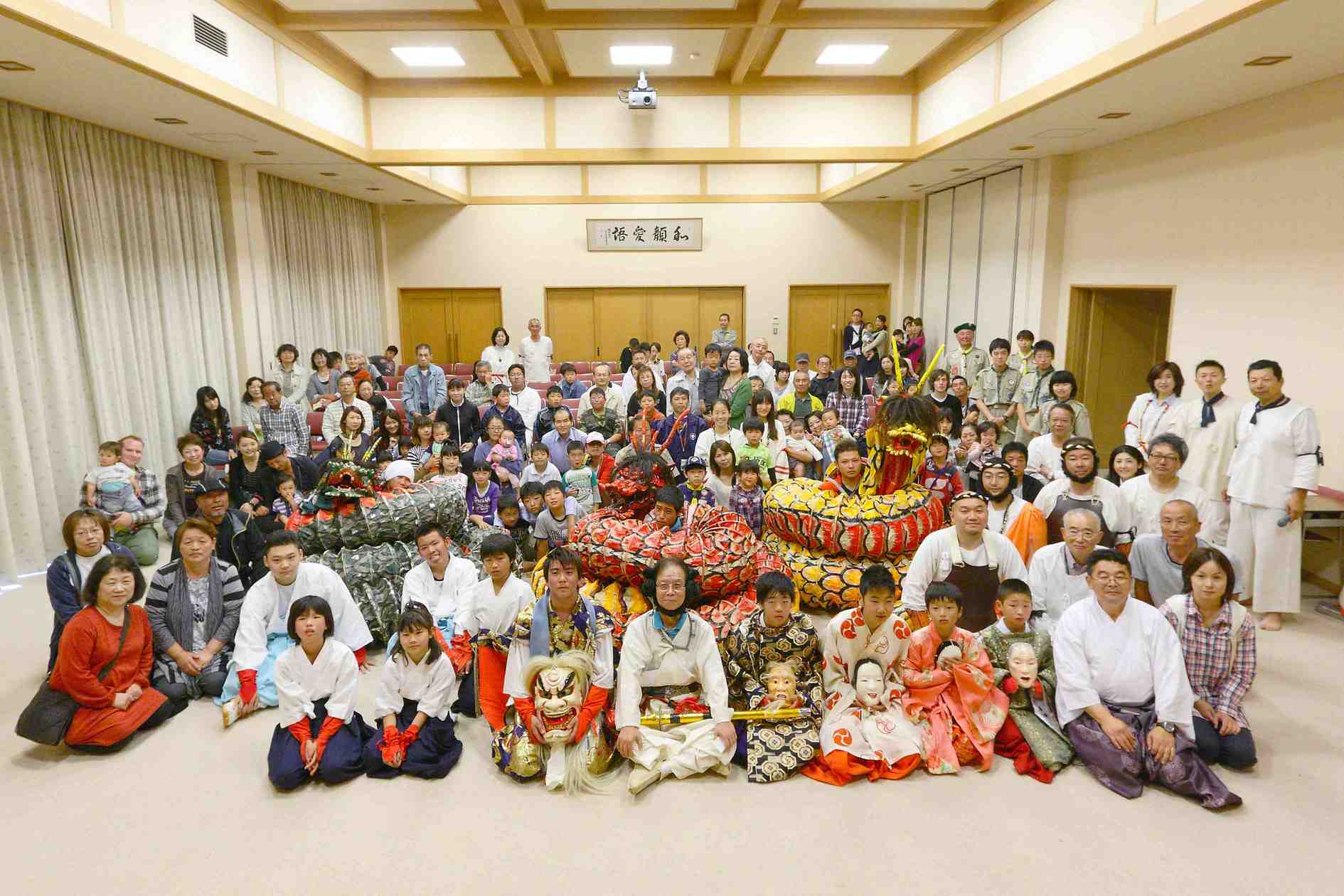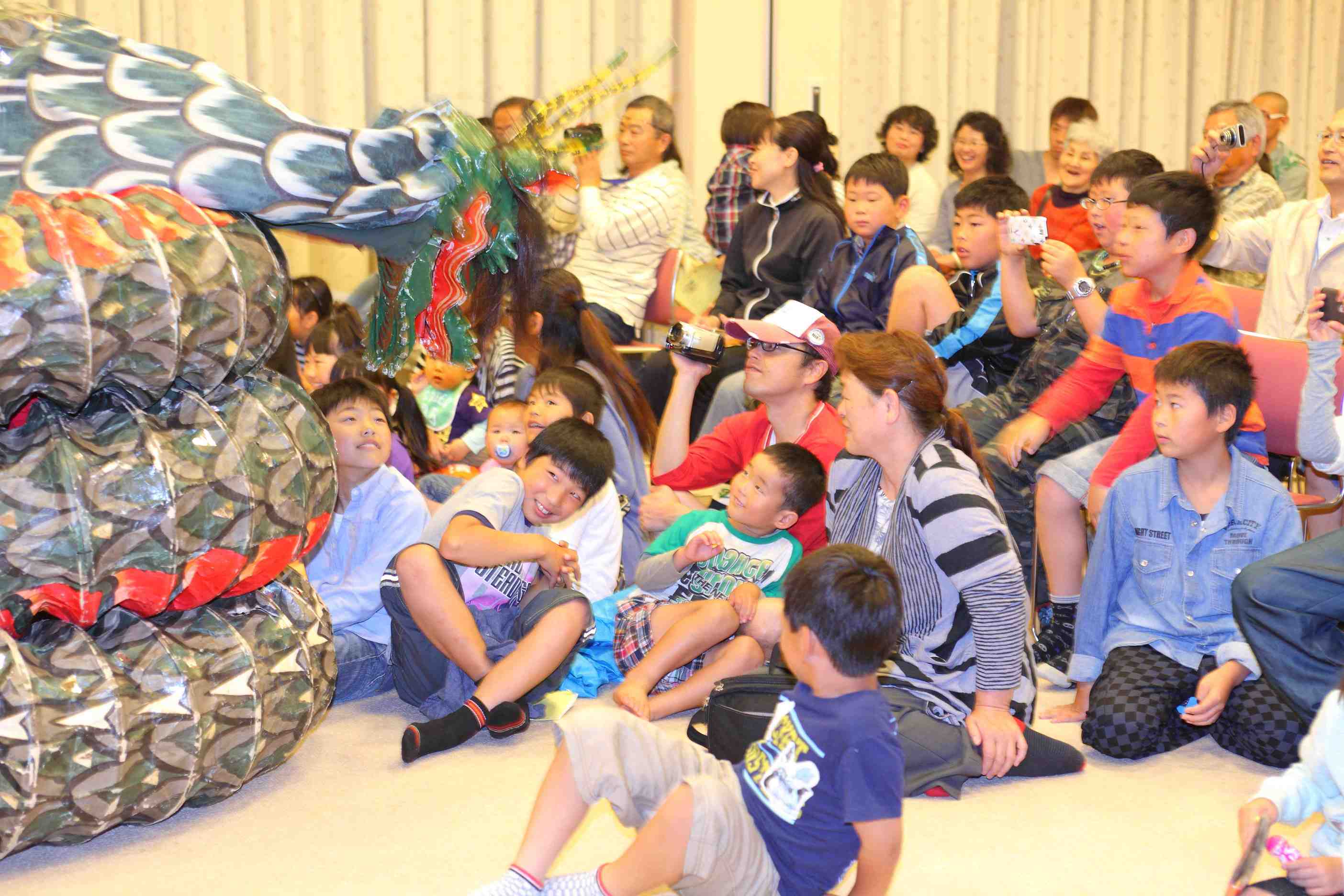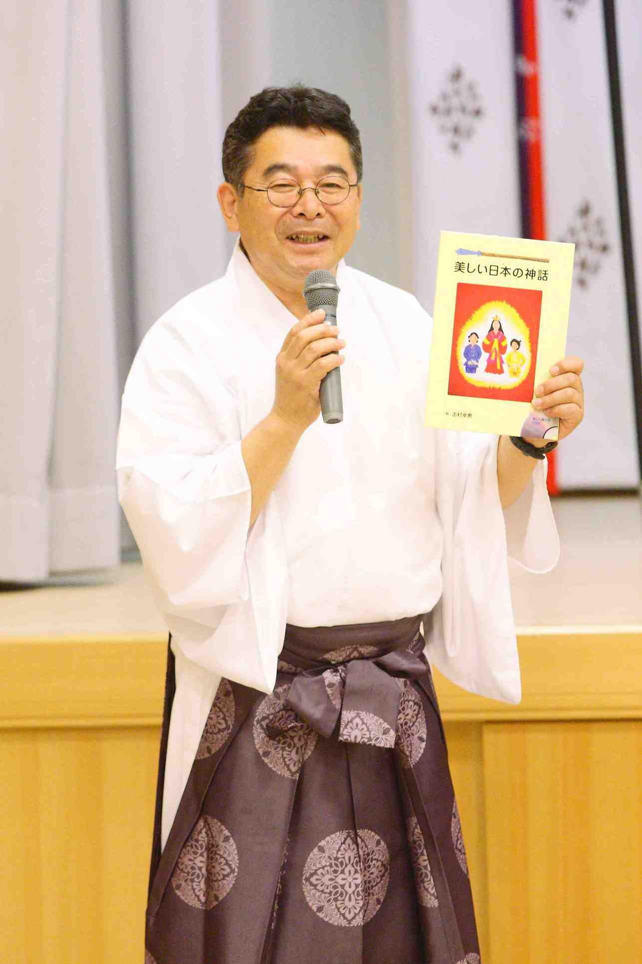 10時より会長の歓迎の挨拶の後、メインイベント、小野会員作成の神話のスライドにによる紙芝居、「國生み」「岩戸開き」「大蛇退治」でオープニングし、楽しいお話と綺麗な画面に子供達も真剣に見入っていました。