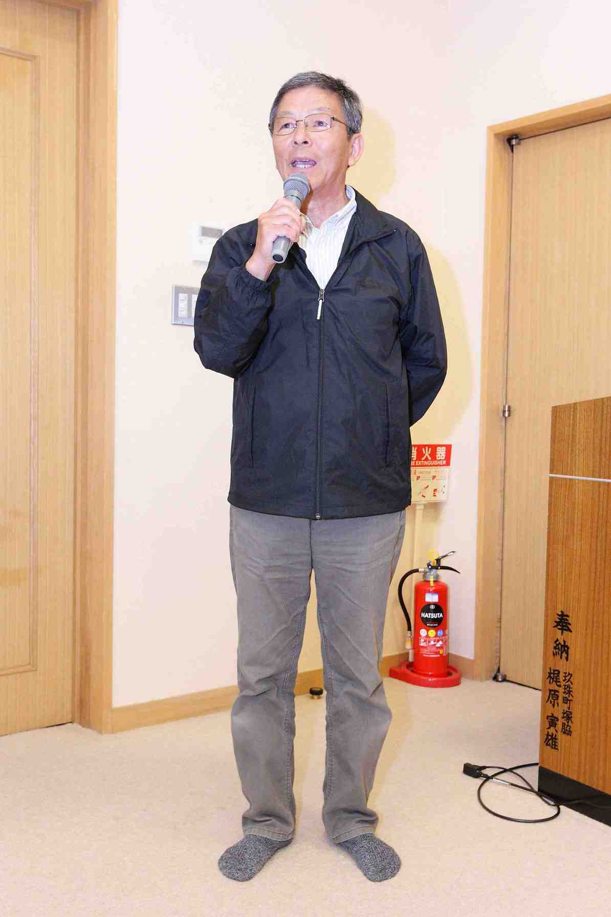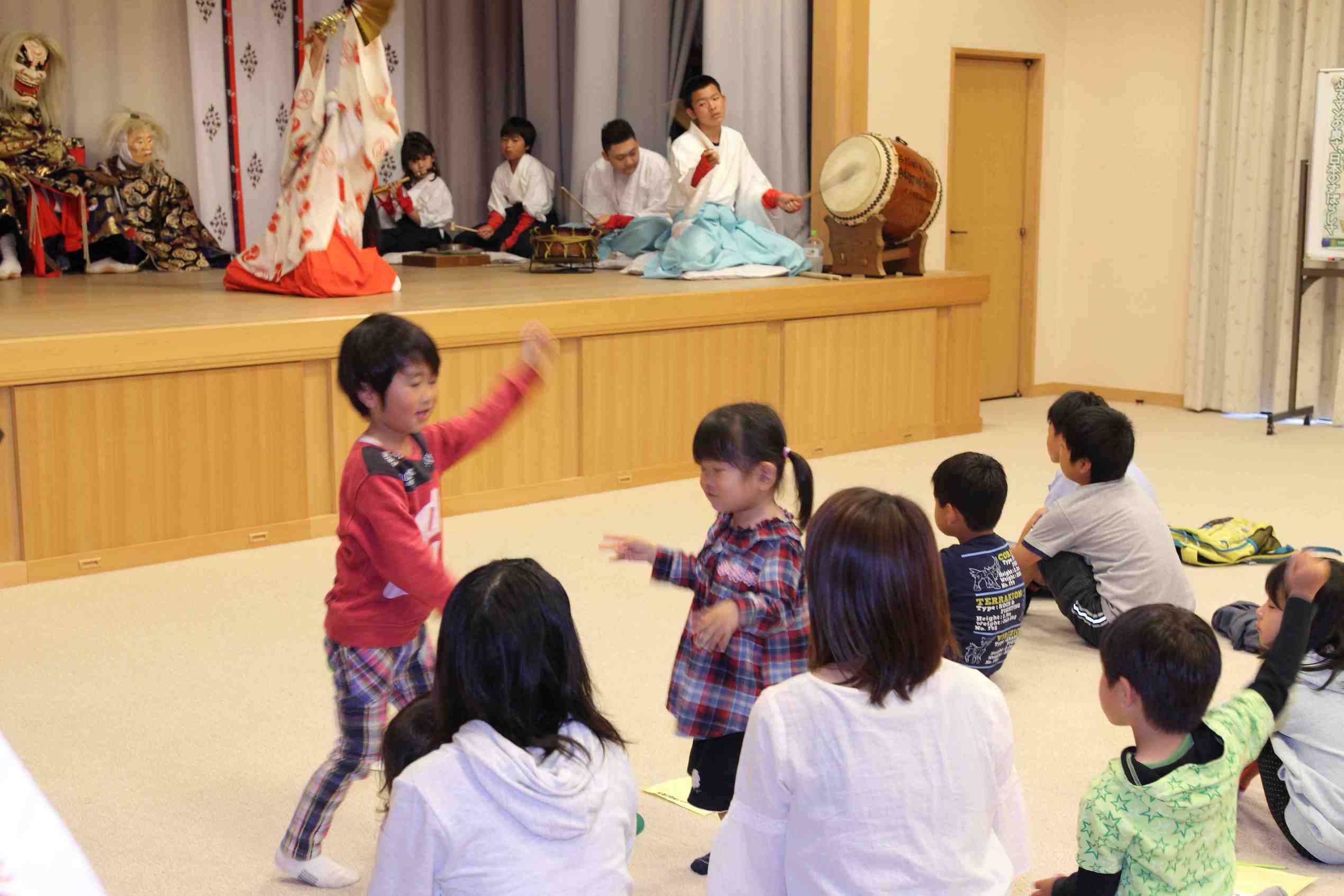 その後子供神楽(柴田会員紹介の小池原子供神楽)出し物は「大蛇退治」、よく修練されていて、躍動的で、子供達も感動したと思います。ただ雨のため神楽殿で出来なかったのが残念です。