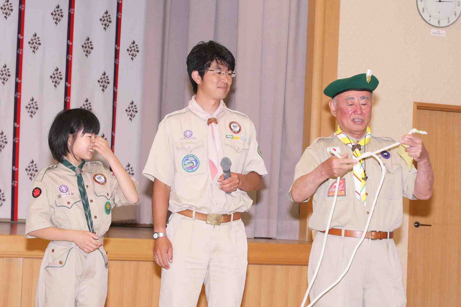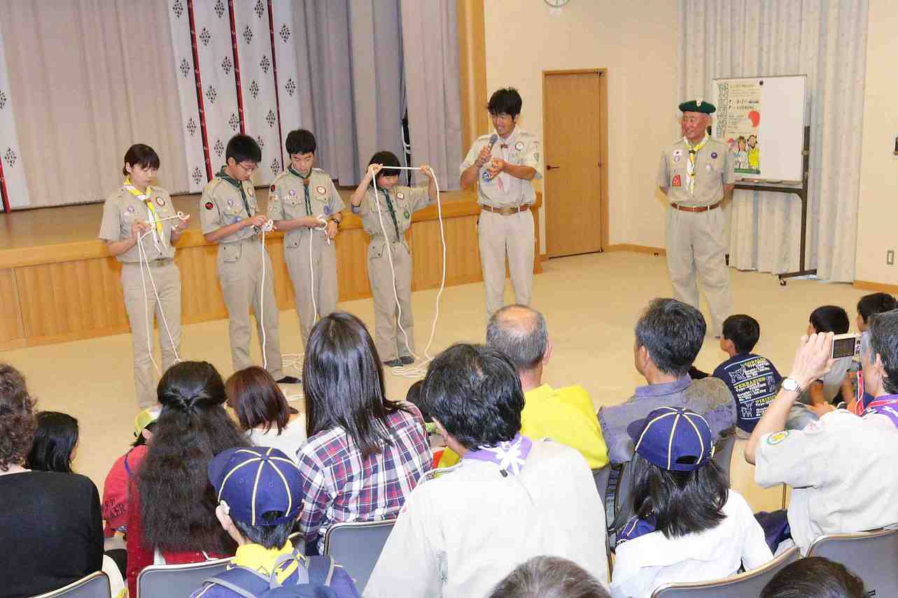 その後参加したボーイスカウト諸君による「縄の使い方、遊び方」の実演がありました。礼儀正しく、統制が取れていて参考になりました。ご協力をいただいたボーイスカウト連盟の芳山憲祐氏にお礼を申し上げます。