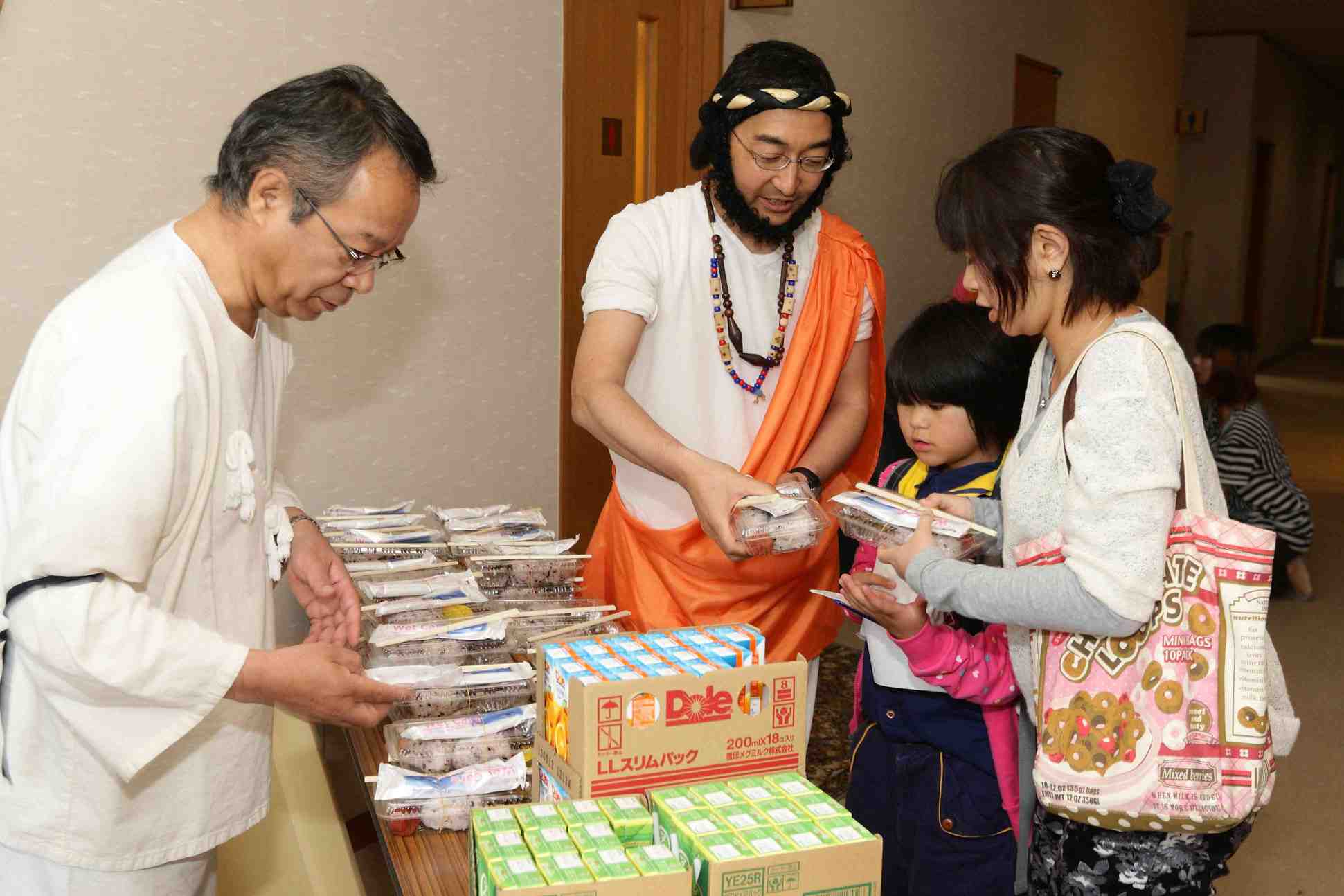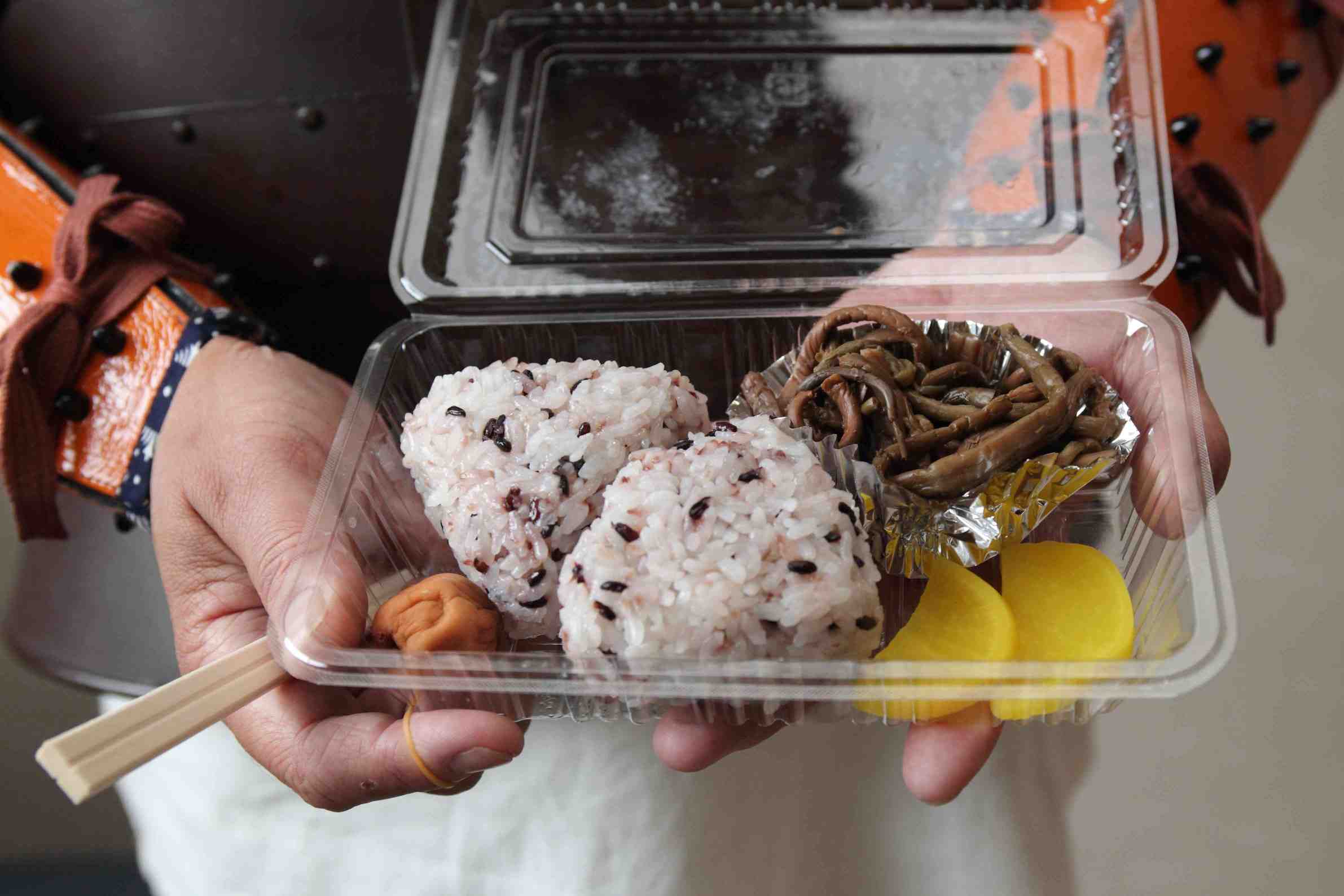 護国神社で作っていただいた好評の「古代食」(赤米おにぎり)は参加者全員におみやげとして配られました。