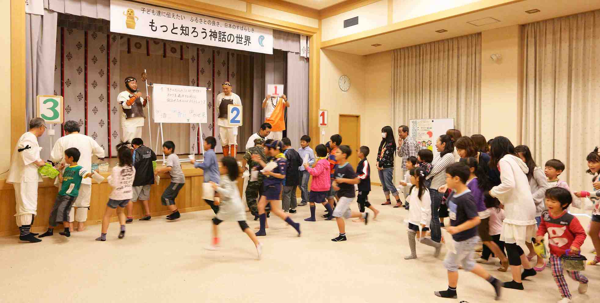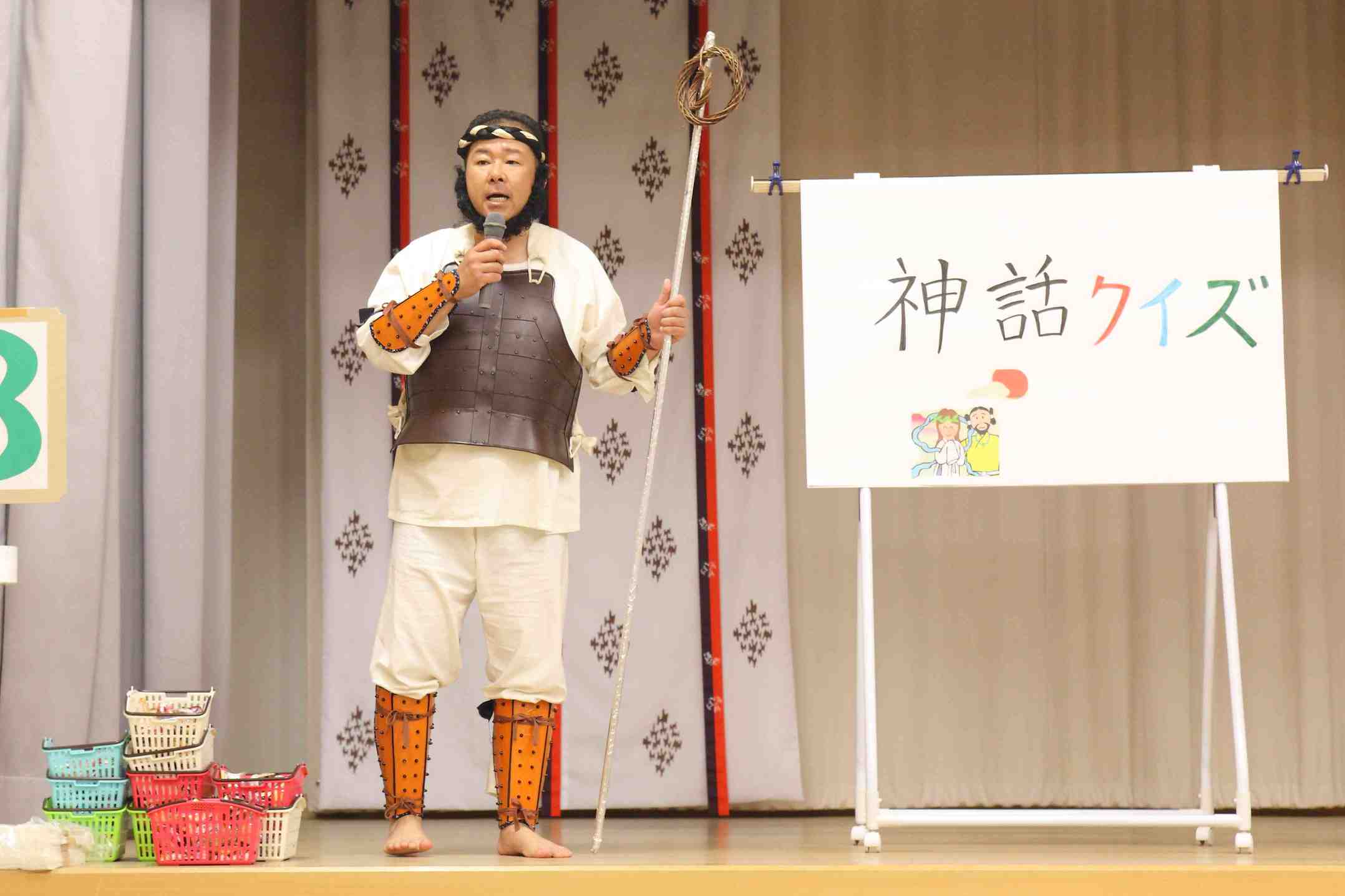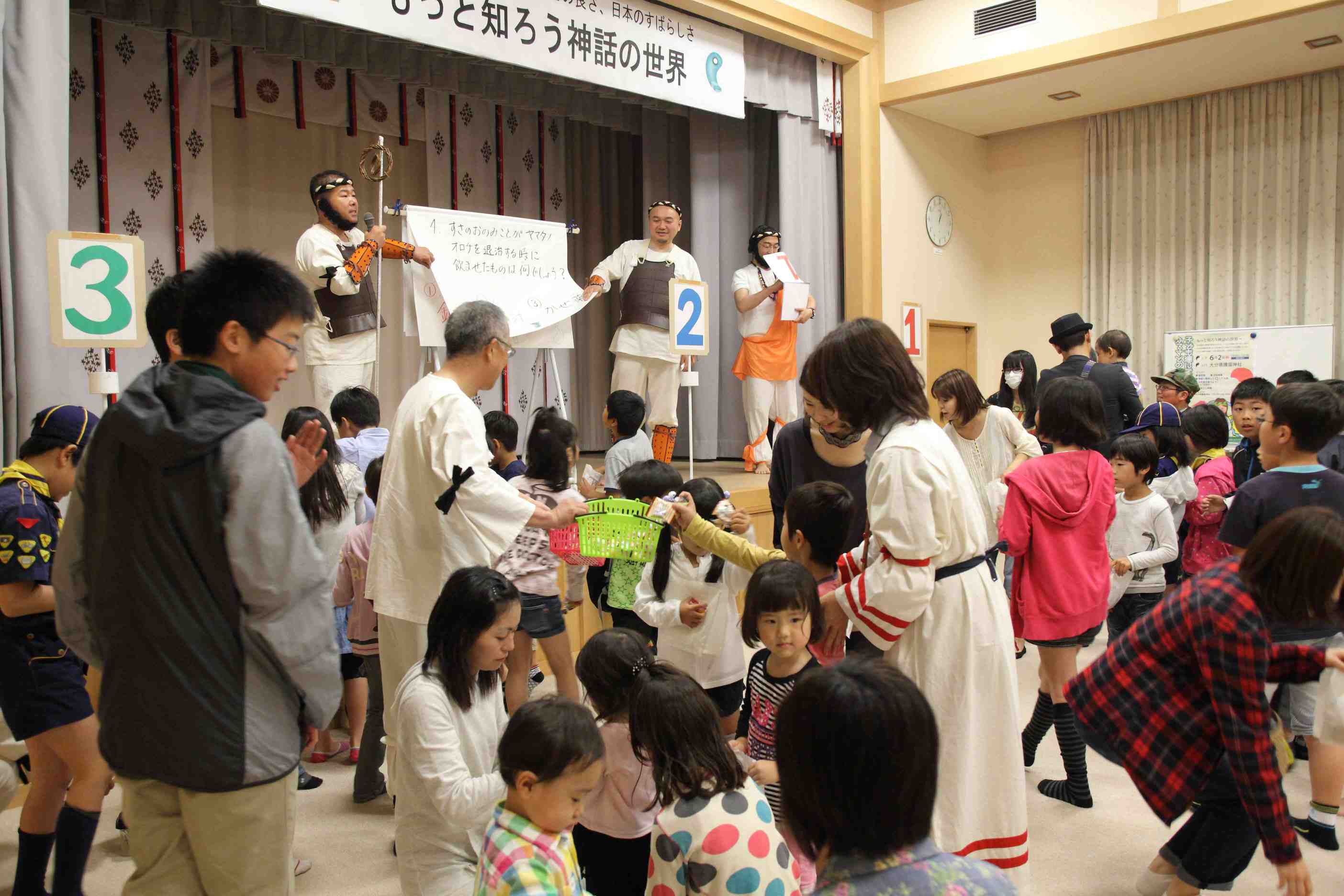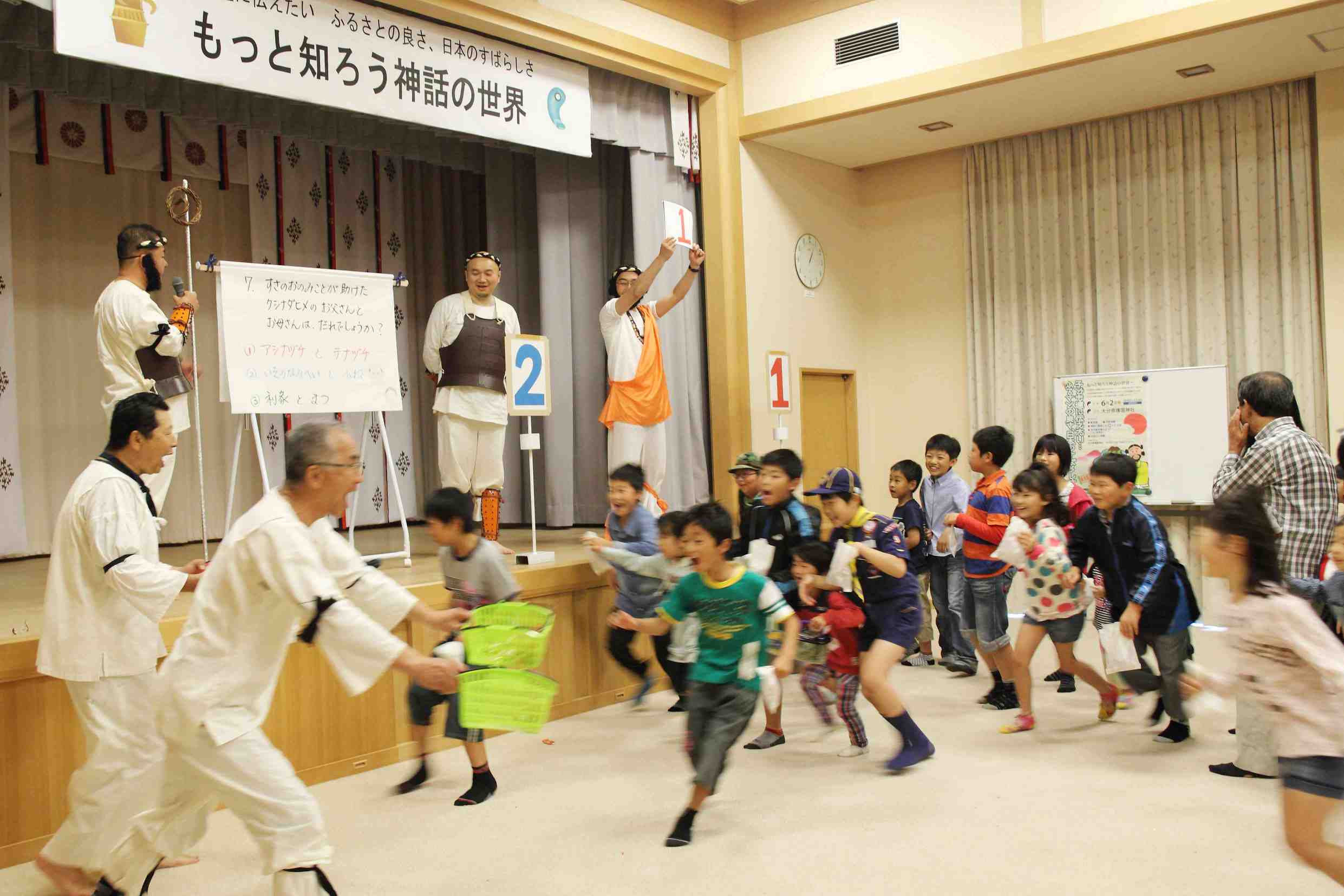 最後に「日本神話のクイズ」大会、芳﨑会員の面白いトークと家族で作られたかわいいクイズのポスターと、人気のお菓子の景品があったためか、大変盛り上がりました。実り多く、楽しかった会も瞬く間に時間は過ぎ無事閉会しました。