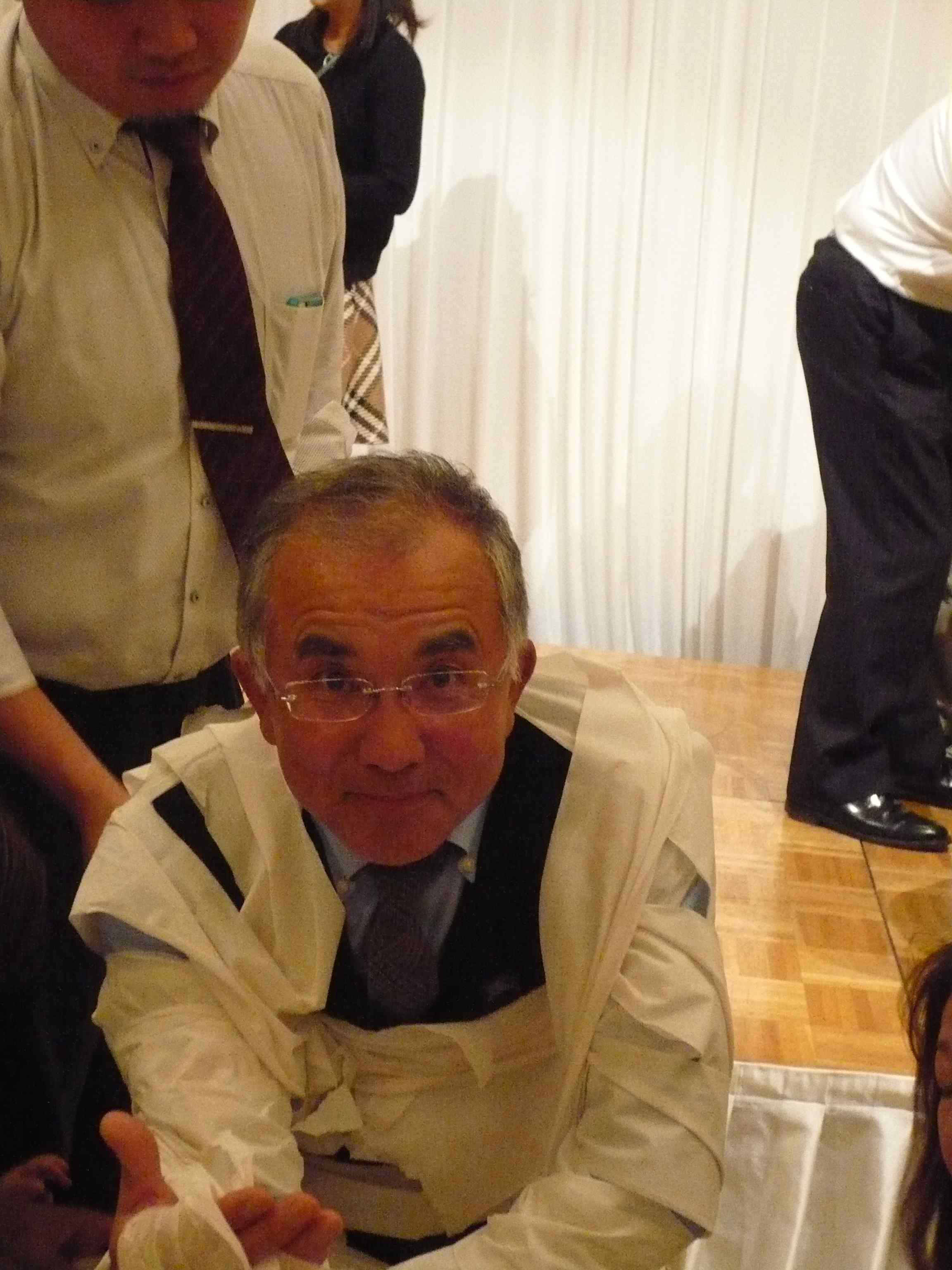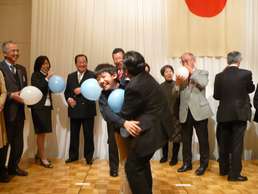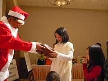 たくさんの家族の方に来て頂き、とても楽しいクリスマス家族会を過ごす事が出来ました。 佐藤俊治会員から「笑顔の数だけ幸せが来る たくさんの笑顔でメリークリスマス」で乾杯!美味しい食事を頂きながら歓談を楽しみ、また念願の「奇跡のリンゴ」を頬張り一年を懐古する場面もありました。 小野親睦委員長の重厚かつ軽妙な進行のなか、「ゲームの王様」「君はソムリエ」「ロダンは君たちだ」皆さんの一杯の笑顔に包まれて時間を忘れてしまいました。 佐藤憲幸会長サンタの、日頃にない少しシャイな登場にまた笑顔。子供たちはプレゼントに大きな笑顔。会員の皆さんもプレゼント交換に楽しい笑顔。多くの笑顔で手をつなぎロータリーソングの合唱。 工藤隆会員による「いやさか」を全員大きな声で三唱し、笑顔のなか楽しい家族会を閉じました。 |