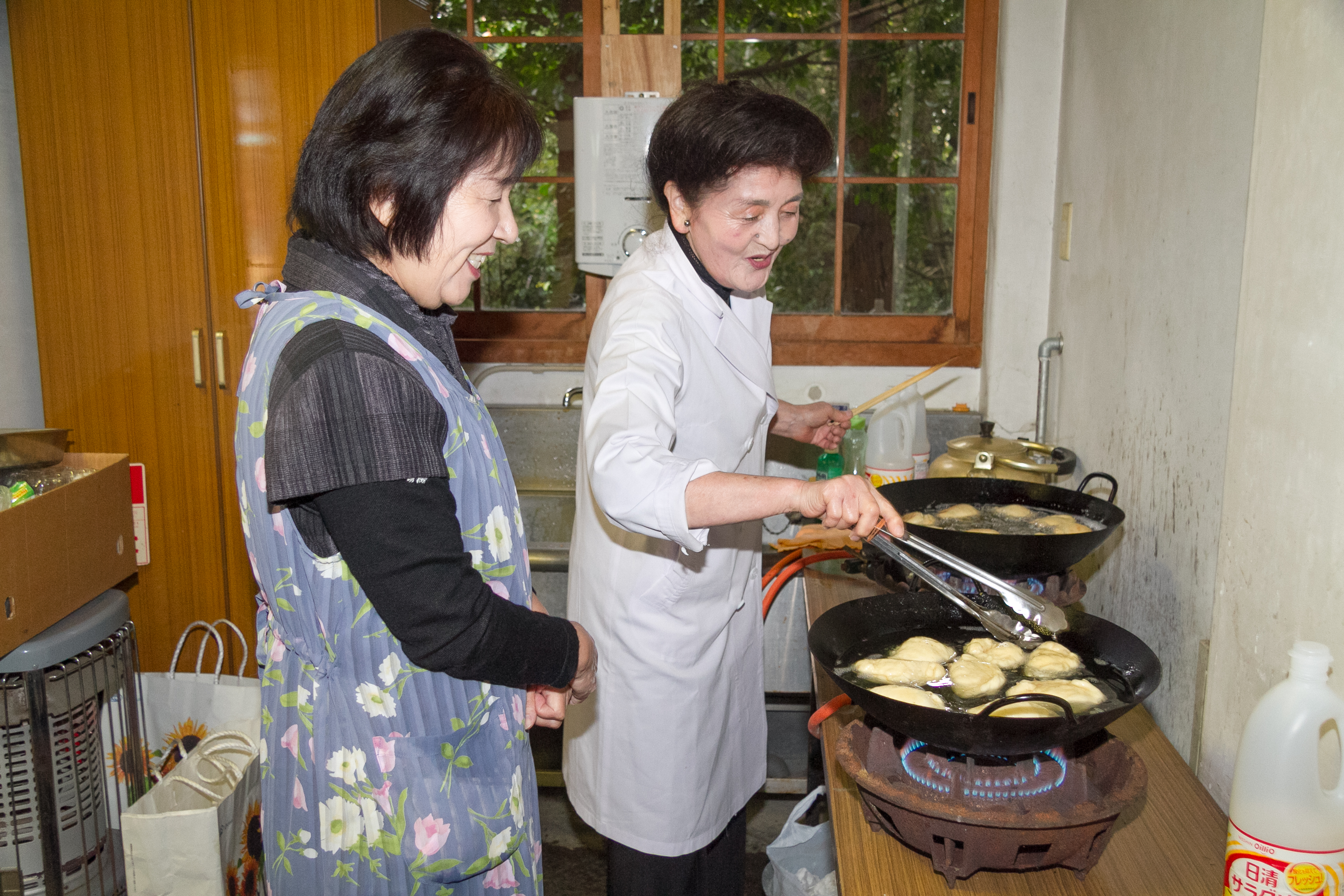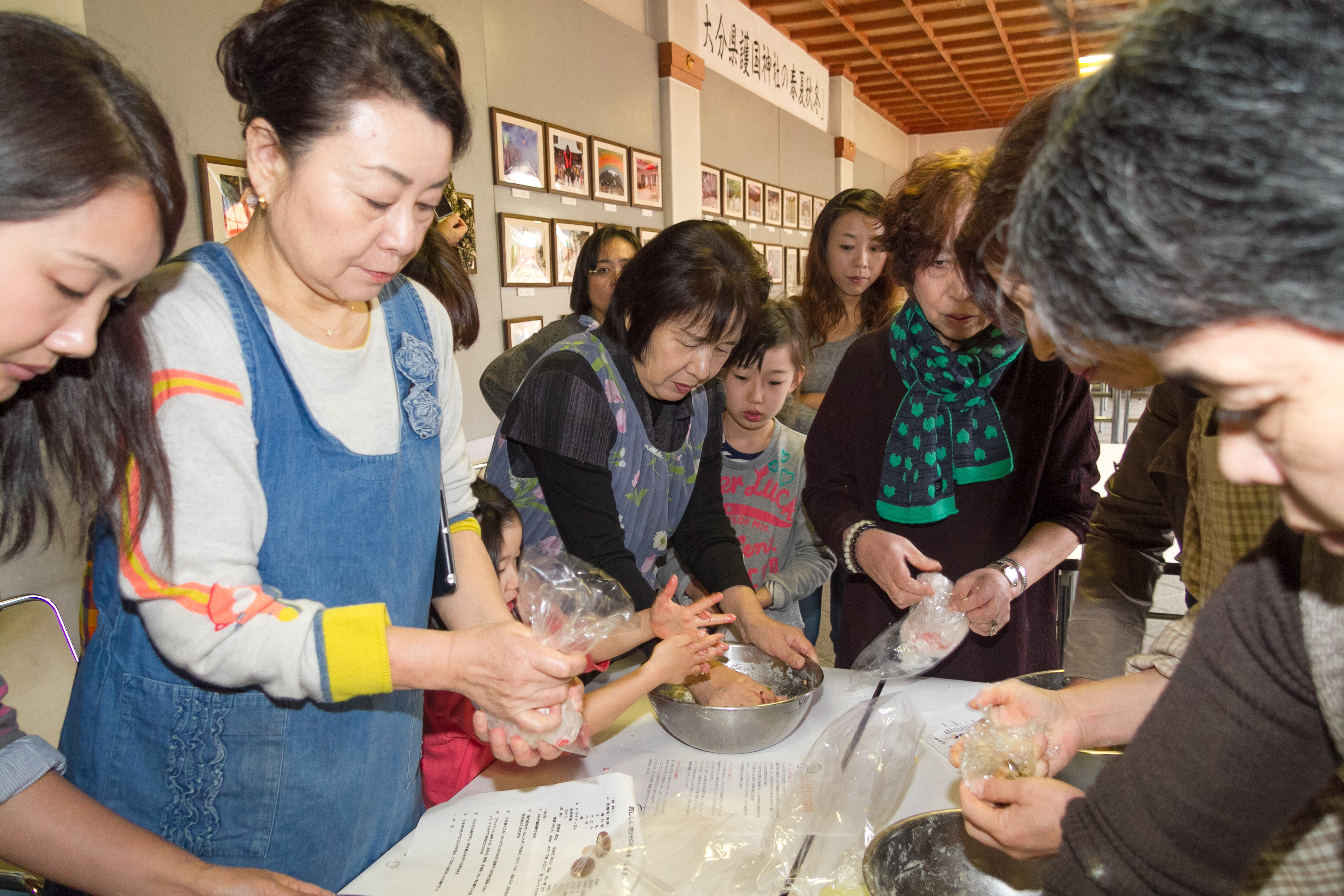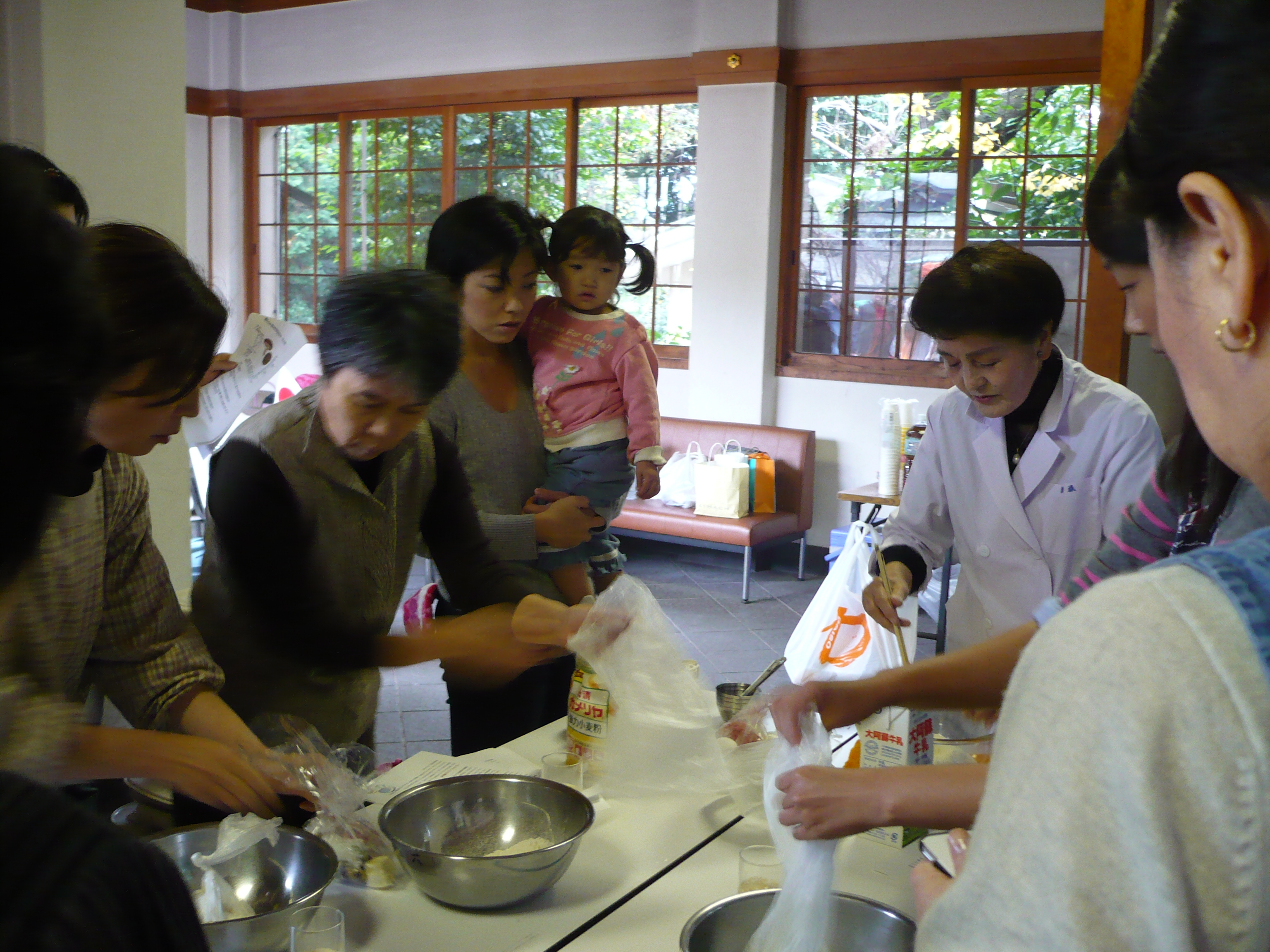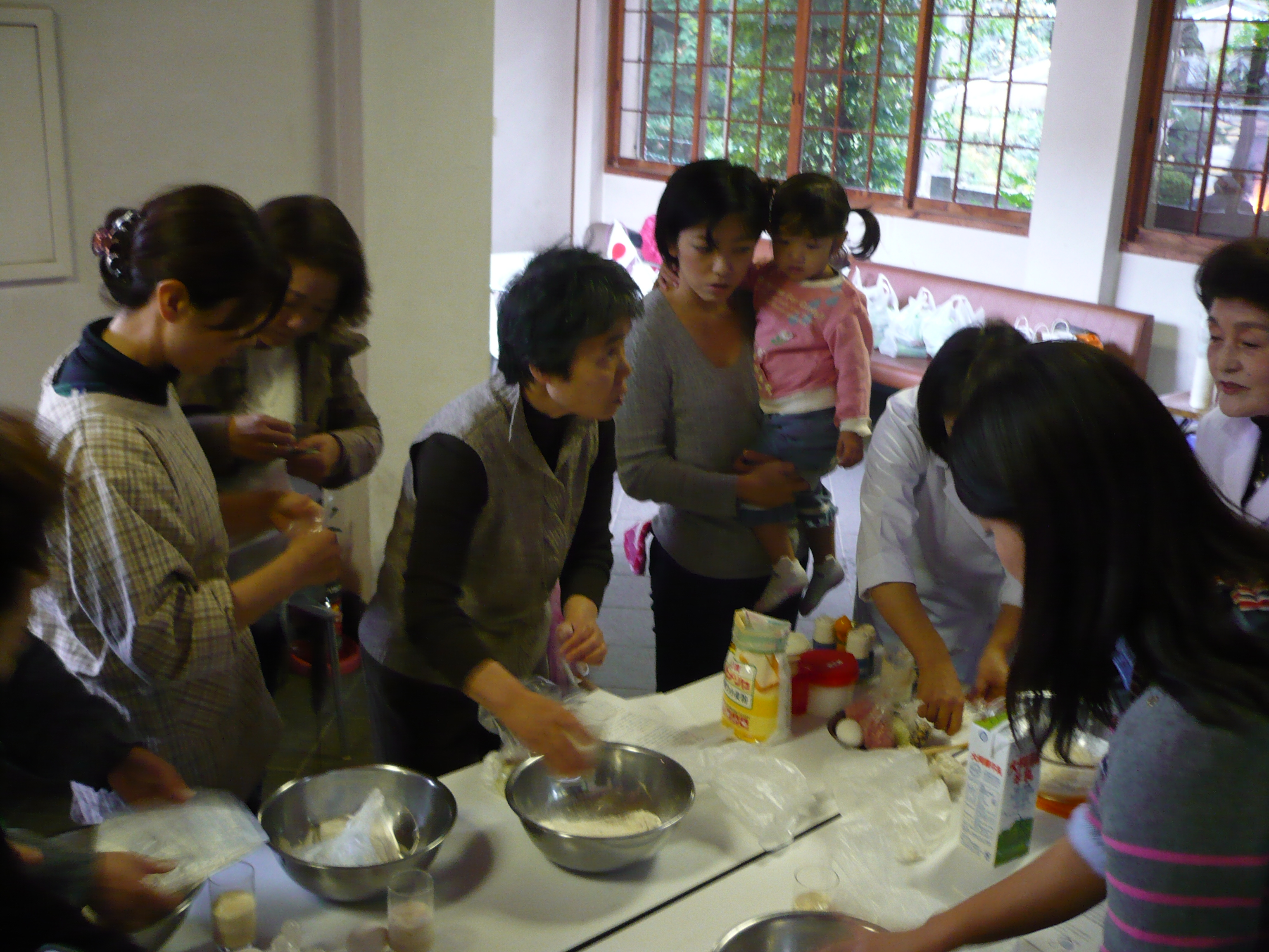 朝より、少々不安な天候ではありましたが、会員、ご家族を含め50名の参加者でのスタートとなりました。 例会行事を終え、各分担ごとに分かれて作業を進めました。 ご夫人達は、田北料理学院の衛藤先生のご指導のもと「ピロシキ作り」を5グループに分かれて行いました。 丁寧かつわかりやすい説明に、皆さん熱心にピロシキ作りを楽しんでました。 男性陣は、バーベキューの準備とおにぎり作りにわかれました。 おにぎりを作るのは、初めてとの人が多く皆さん童心に返ったように一生懸命で大いに盛り上がりを見せた 一場面となりました。 その後、出来上がった料理を皆で食べながら楽しい時間を過ごしました。 講師をして下さった、衛藤先生と場所を提供してくださった小野会員に感謝しながら、2月の財団プロジェクト に向かってさらに頑張って取り組んでいきたいと思いました。 皆さん大変お疲れ様でした。