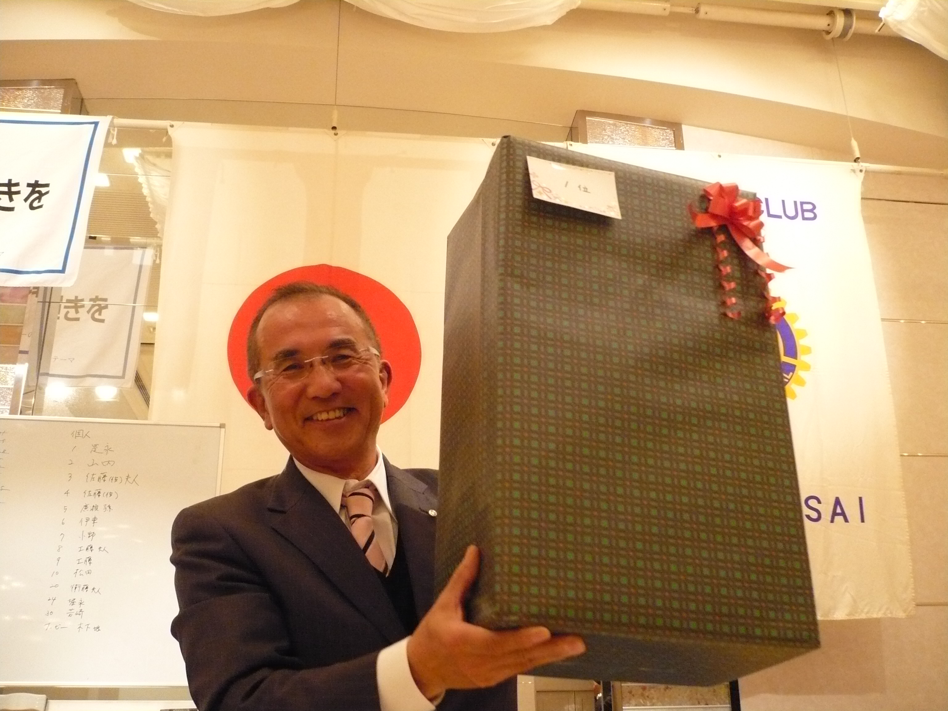 会長は日頃から当クラブのためにご尽力されているので、サンタさんからクリスマスプレゼントが